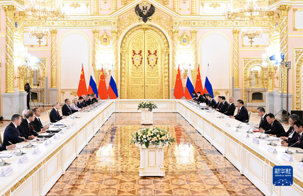 习近平指出,中俄互为彼此最大邻国,同俄罗斯巩固和发展长期睦邻友好关系,符合历史逻辑,是中方的战略抉择,不会因一时一事而改变。自我10年前首次对俄进行国事访问以来,中俄双方相互尊重、相互信任、互利互惠,两国关系历久弥坚,呈现更加全面、更加务实、更具战略性的特点。此访期间,我们车队途经之处,很多俄罗斯民众自发挥手致意,让我深切感到中俄关系具有深厚民意基础。不管国际风云如何变幻,中方都将继续致力于推进中俄新时代全面战略协作伙伴关系。我此次对俄罗斯的国事访问是友谊之旅、合作之旅、和平之旅。中方愿同俄方一道,继往开来,丰富中俄新时代全面战略协作伙伴关系内涵,为两国人民创造更多福祉,为促进人类进步事业作出更大贡献。