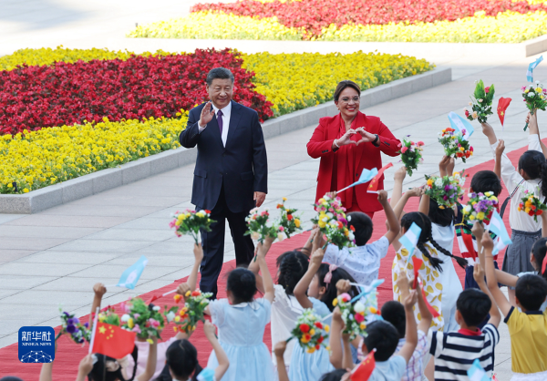 6月12日下午,国家主席习近平在北京人民大会堂同来华进行国事访问的洪都拉斯总统卡斯特罗举行会谈。这是会谈前,习近平在人民大会堂东门外广场为卡斯特罗举行欢迎仪式。新华社记者 黄敬文 摄