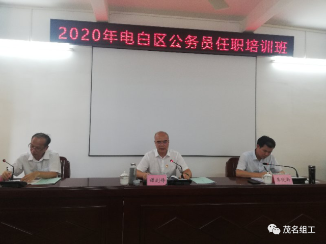 7月15日,电白区委副书记、区长谭剑锋在2020年电白区公务员任职培训班开班仪式上给广大学员上了一节生动的党课,提出让大家更加深入系统地学习习近平新时代中国特色社会主义思想、党的理论和路线方针政策以及党中央和省委、市委、区委有关工作精神,更加坚决地贯彻落实区委、区政府工作部署,进一步改造主观世界、提高思想政治素质,不断提升工作能力和领导水平。