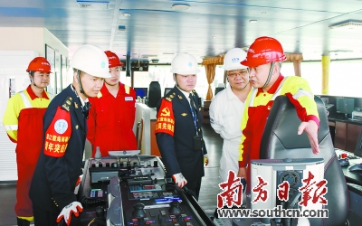 湛江海事联合湛江船级社、中海油服船舶事业部湛江分公司三方共同检查船舶。通讯员供图